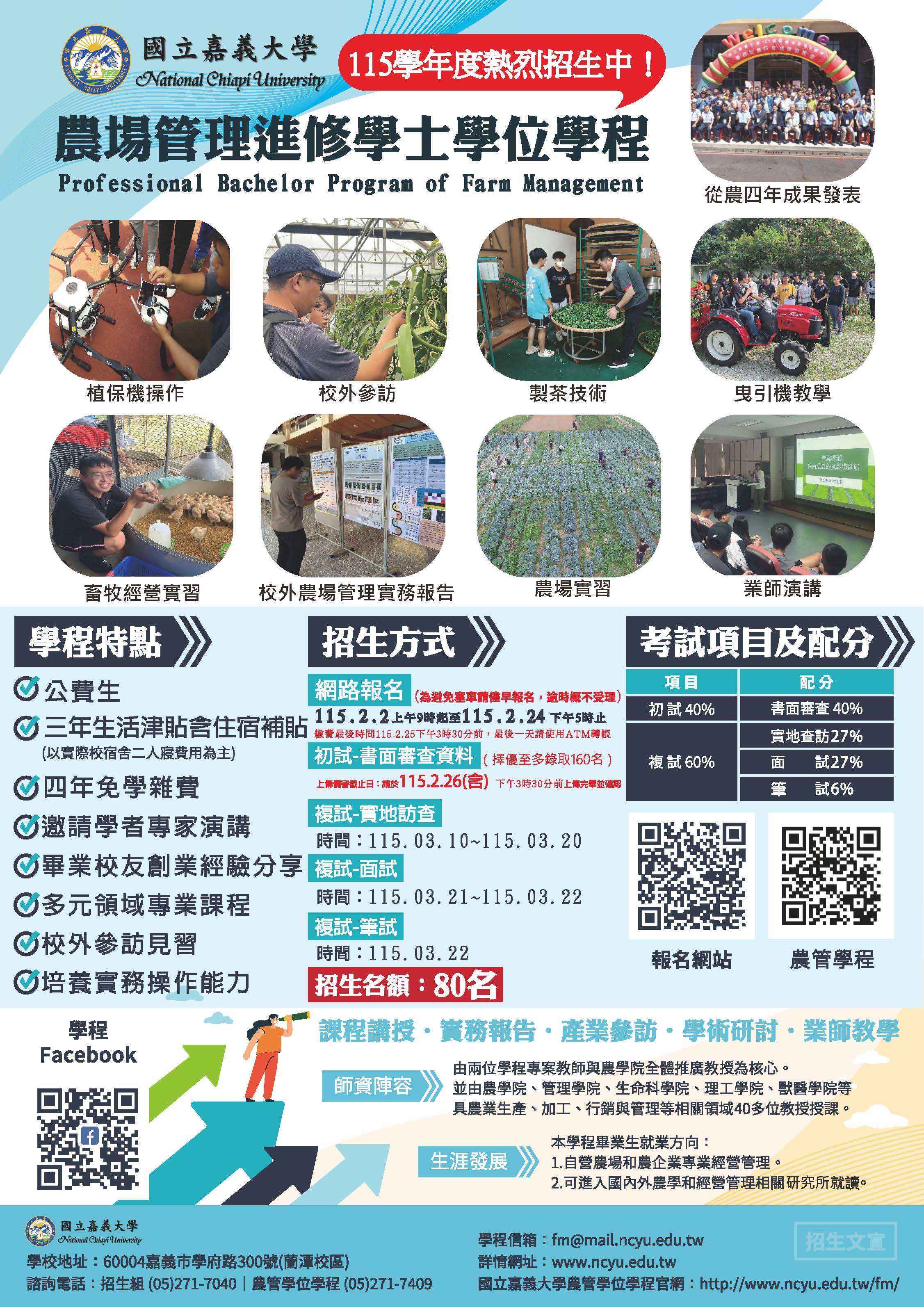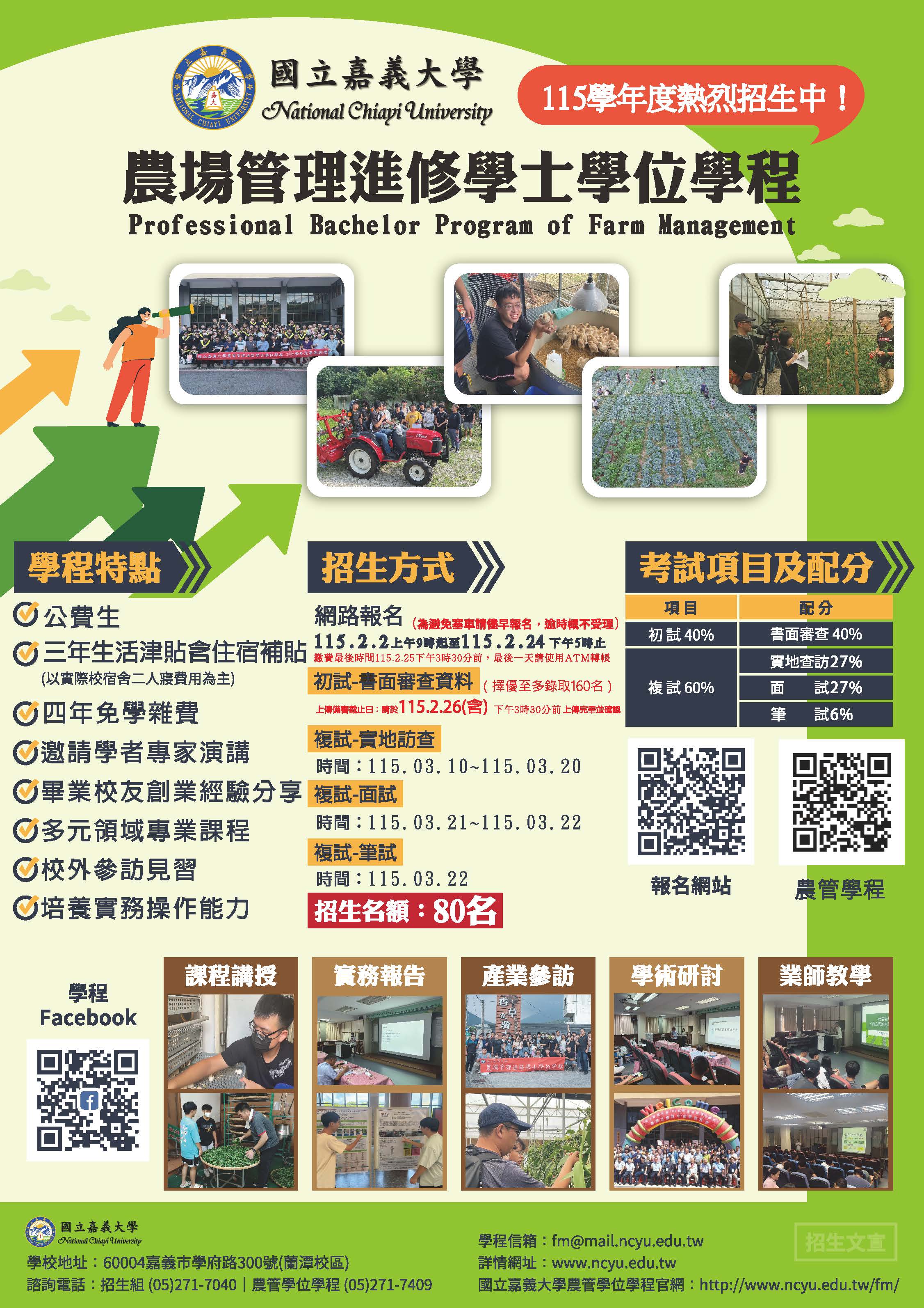 轉知 國立嘉義大學農場管理進修學士學位學程115學年度農業公費專班招生簡章及海報