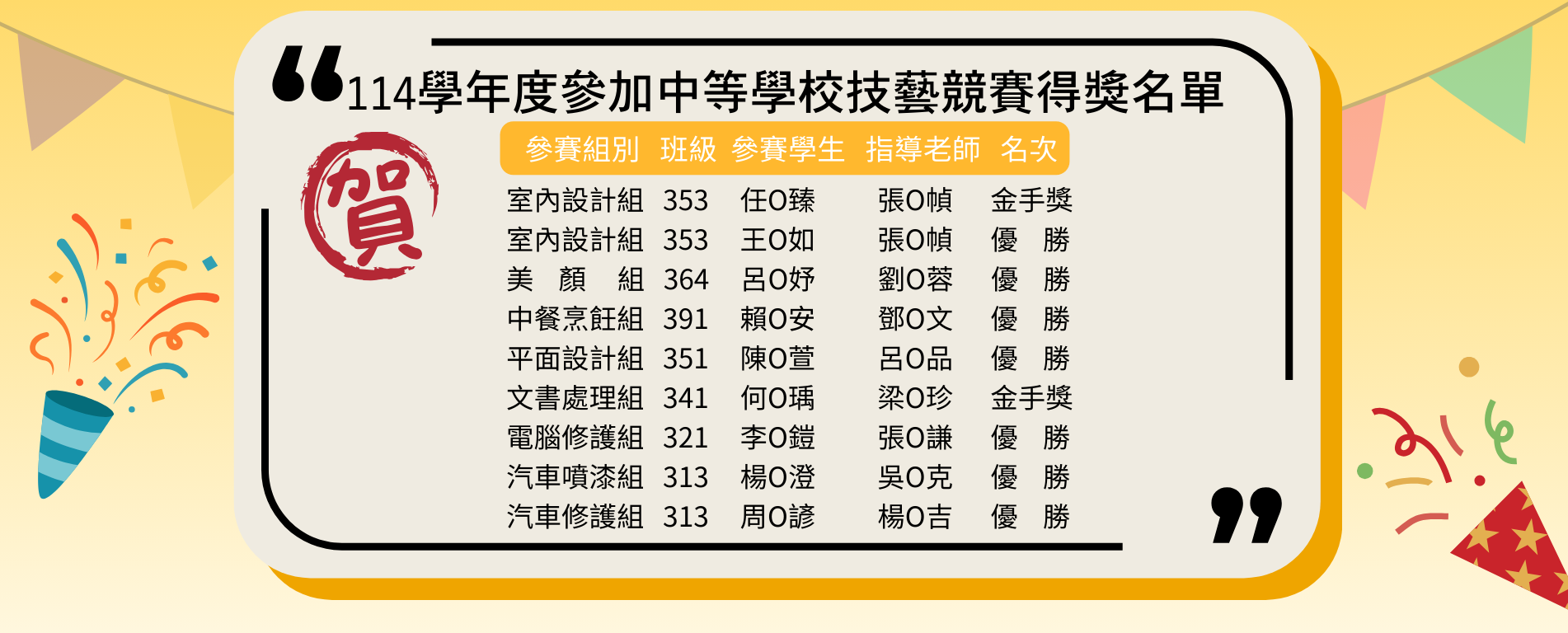 歷年技藝競賽成績
